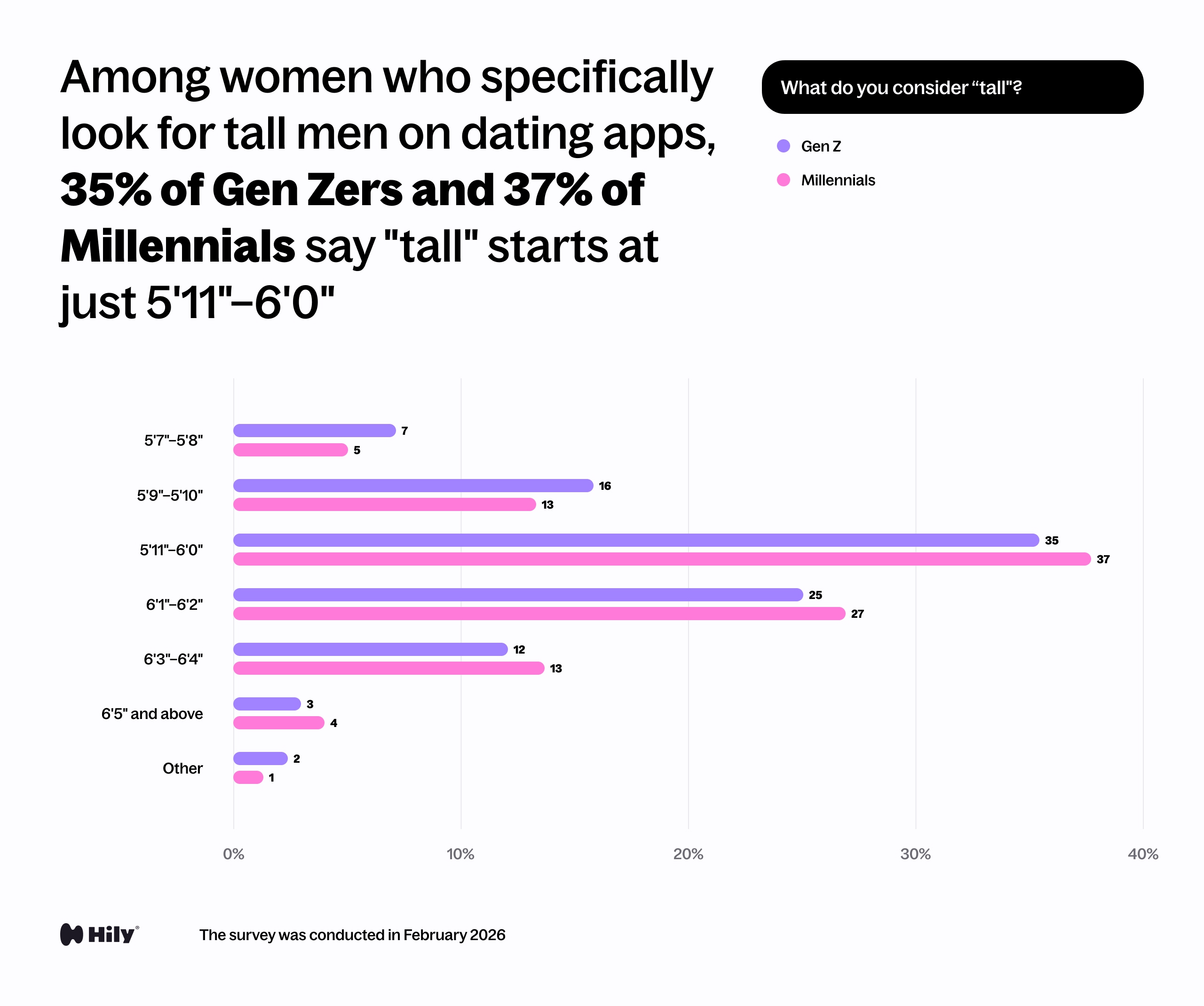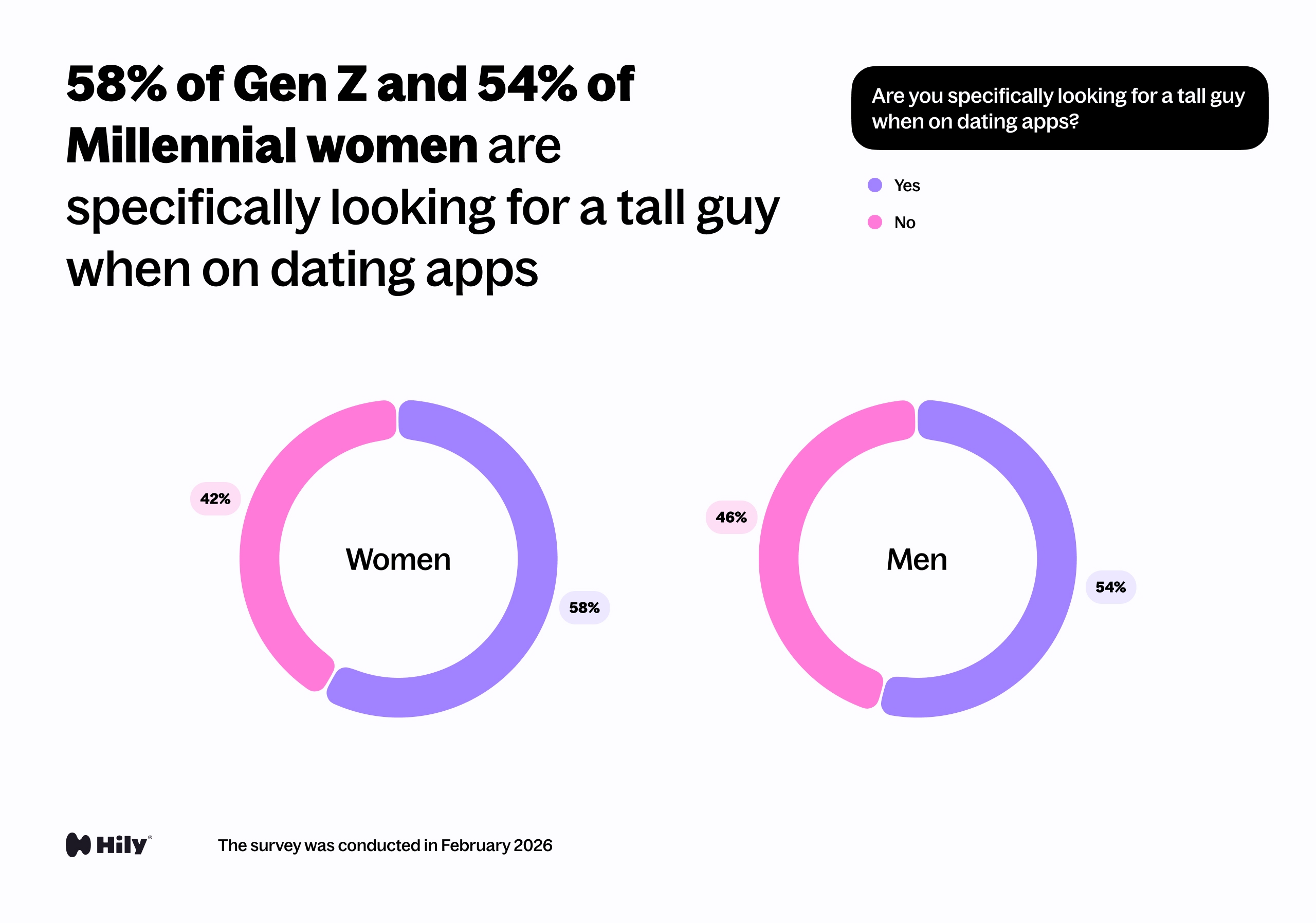 - 58% of Gen Z and 54% of Millennial women are specifically looking for a tall guy when on dating apps.