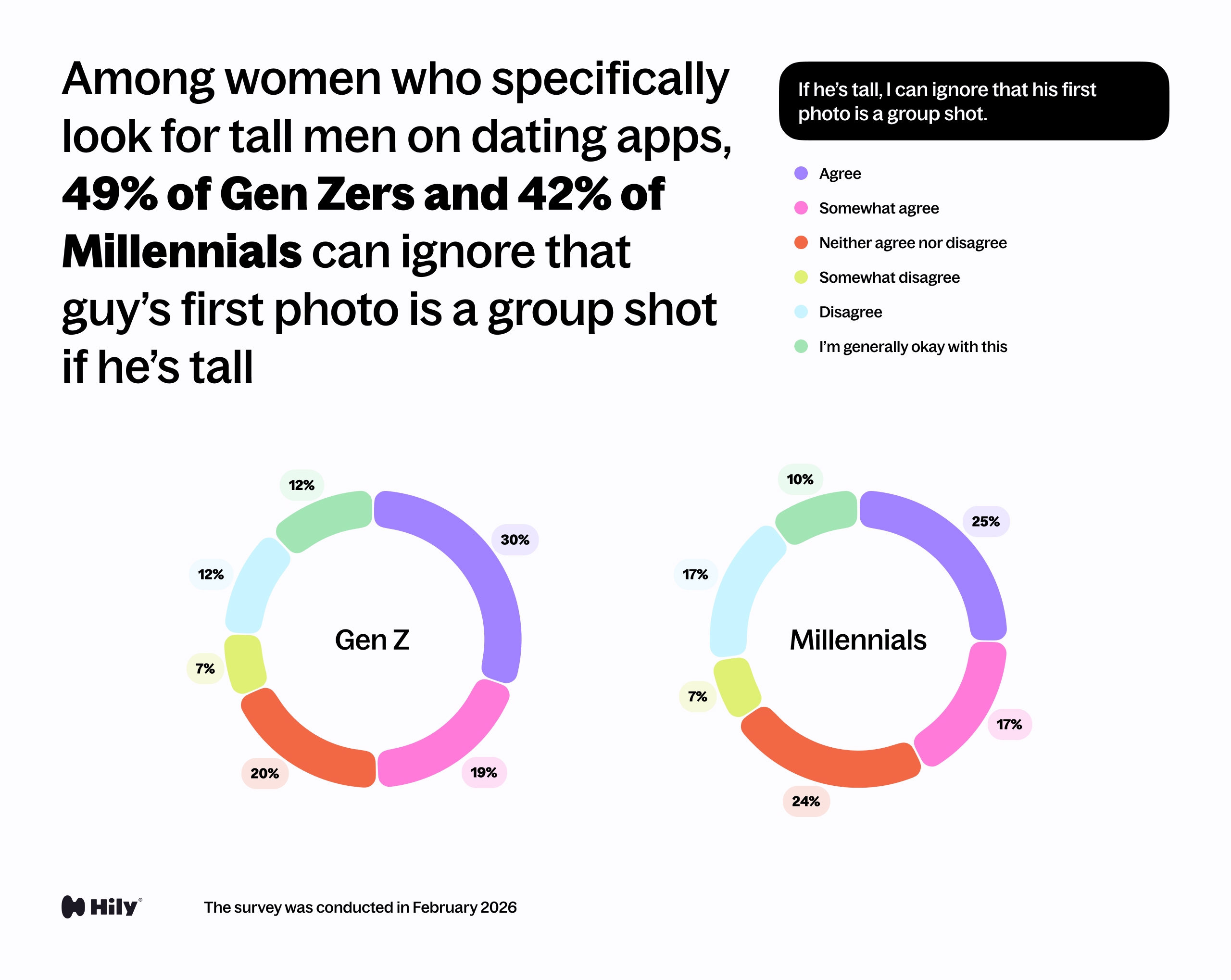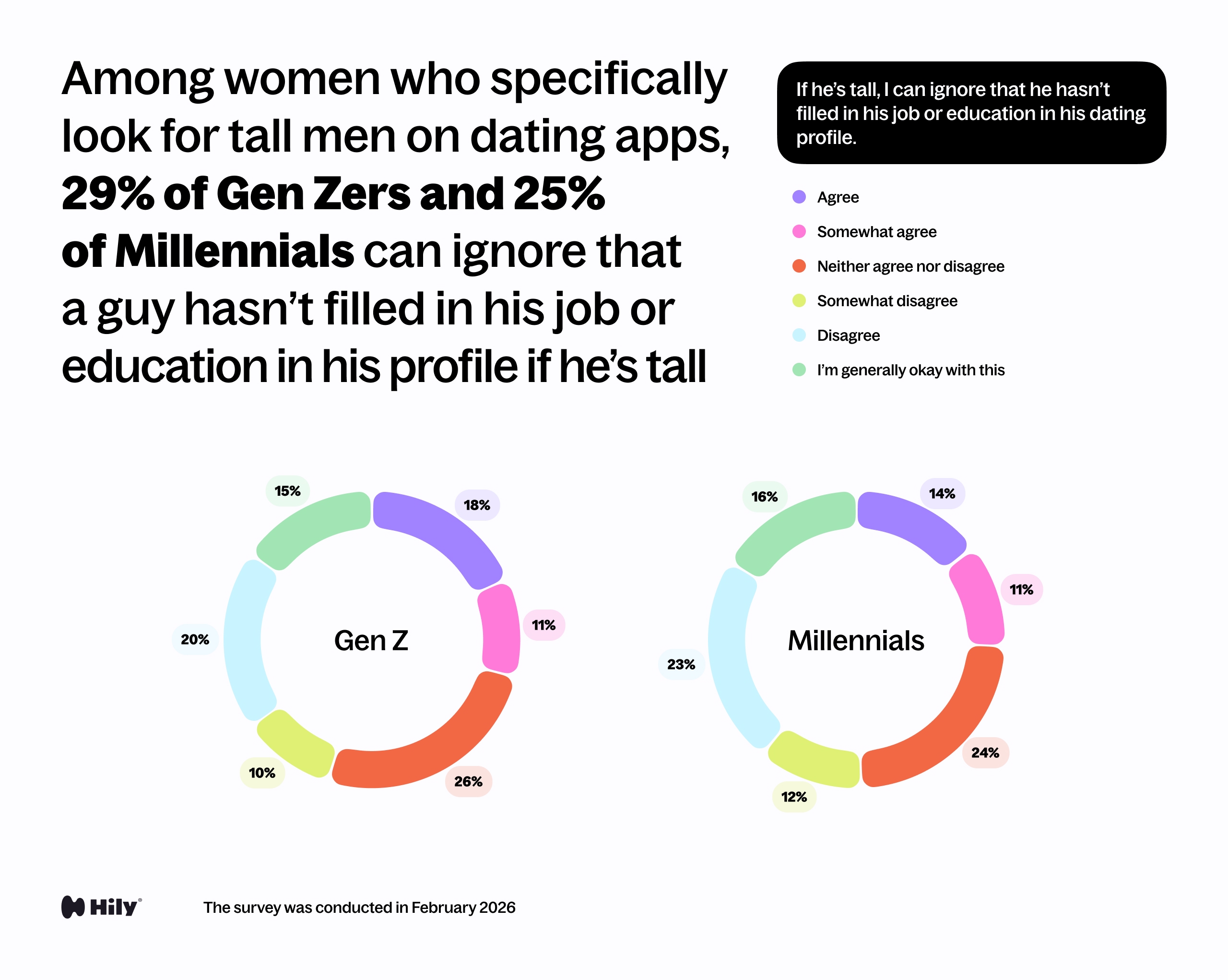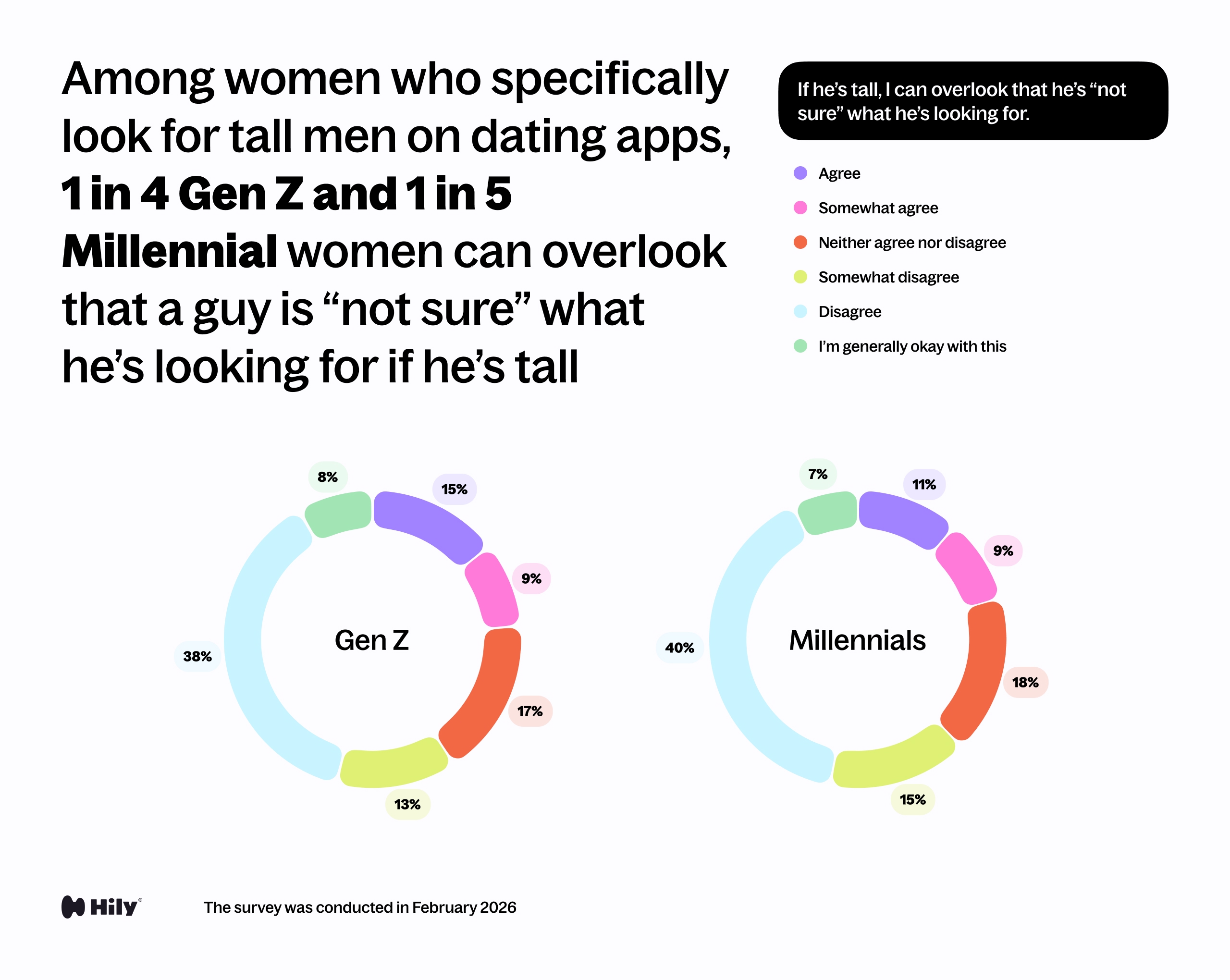 To find out what women who are specifically looking for tall guys are willing to overlook, Hily surveyed 1,000 American Gen Z and Millennial women who actively seek tall men on dating apps.