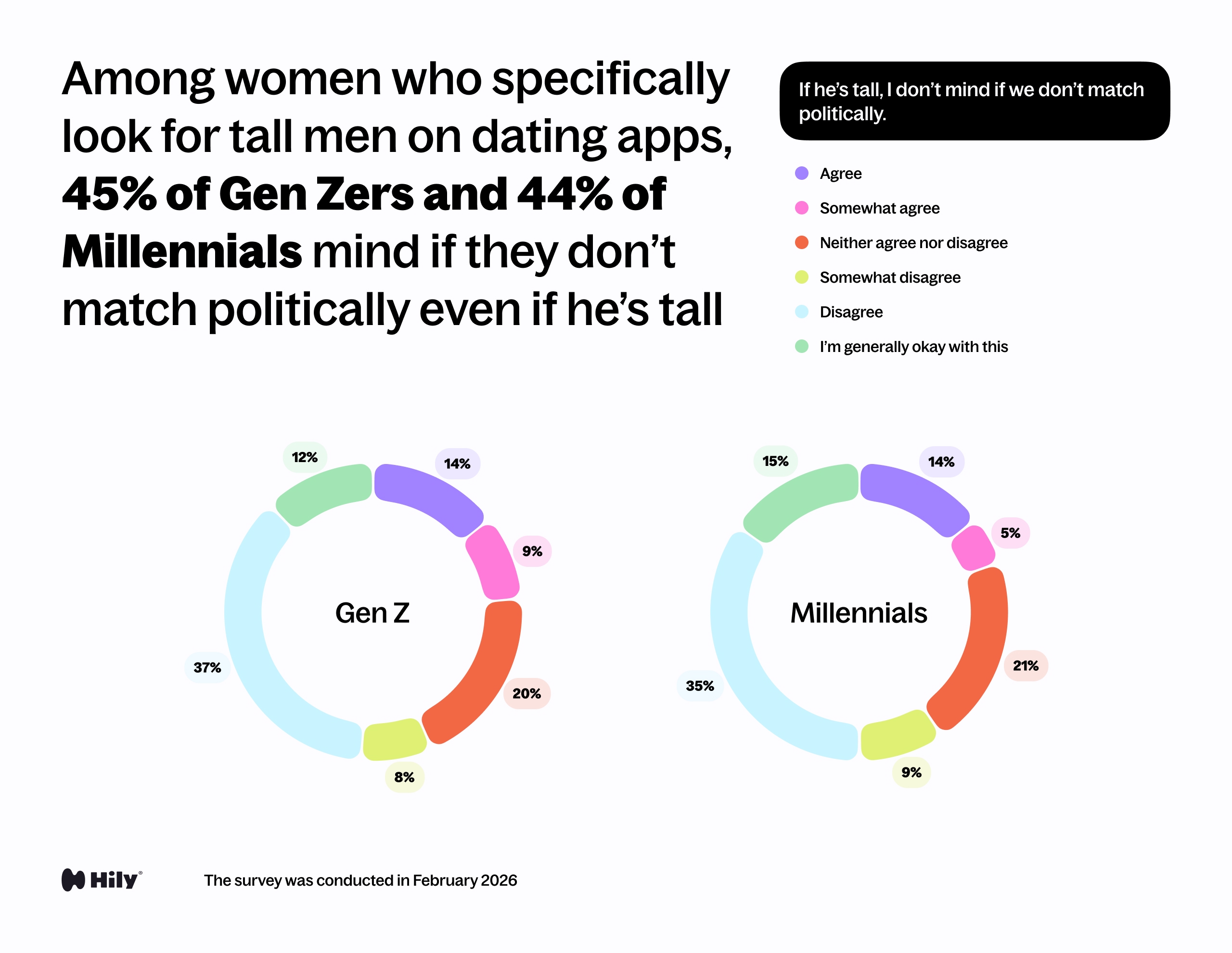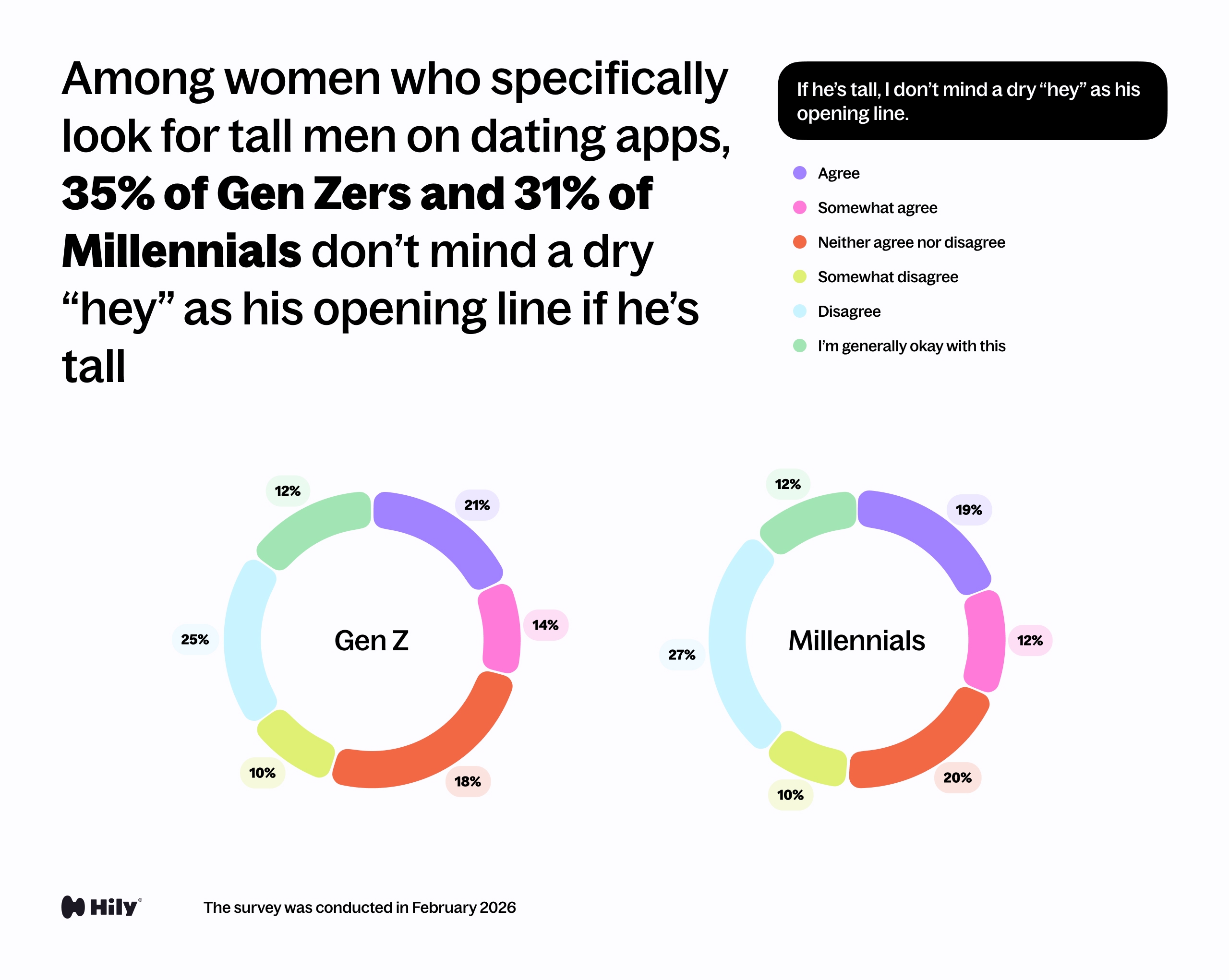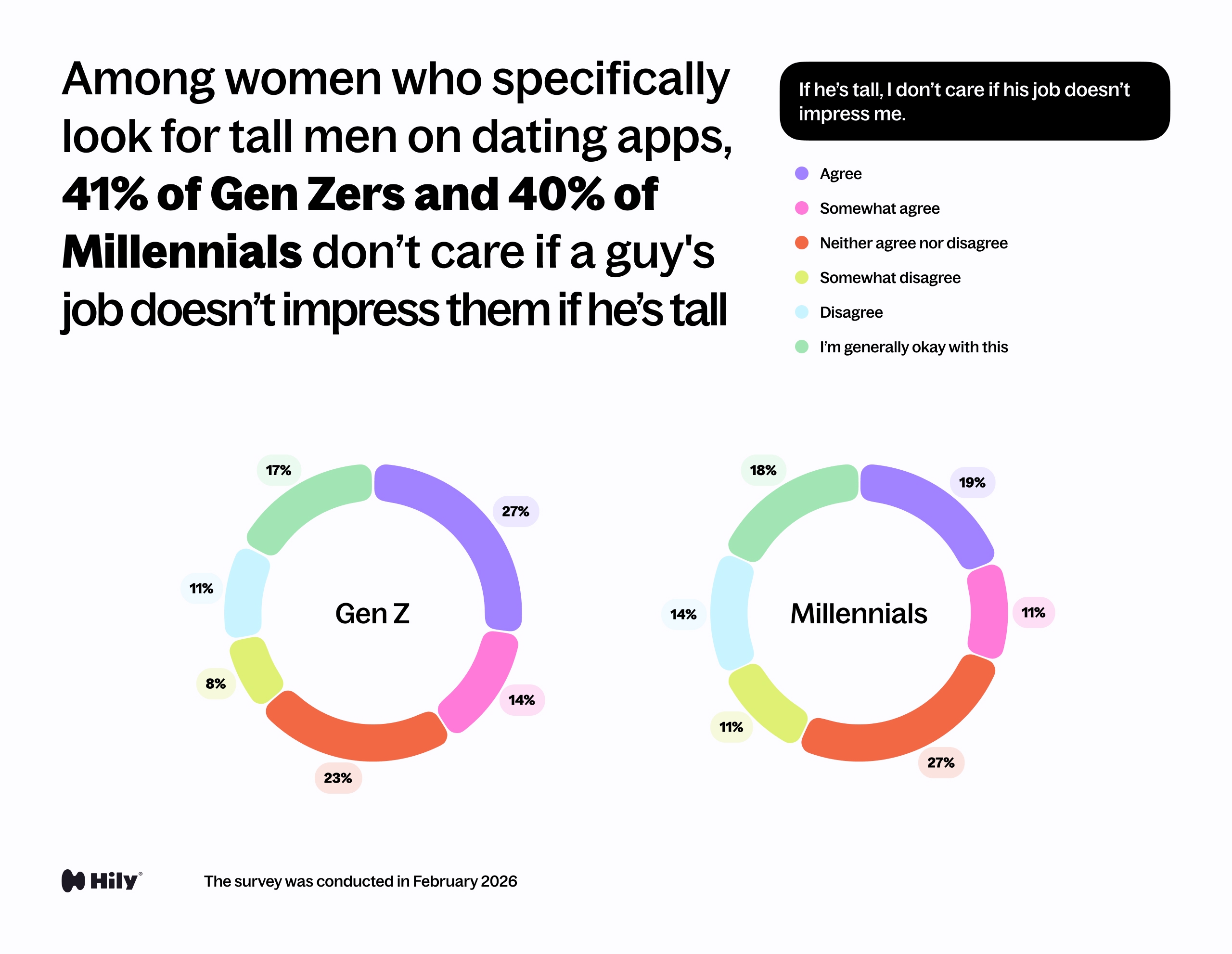 To find out what women who are specifically looking for tall guys are willing to overlook, Hily surveyed 1,000 American Gen Z and Millennial women who actively seek tall men on dating apps.